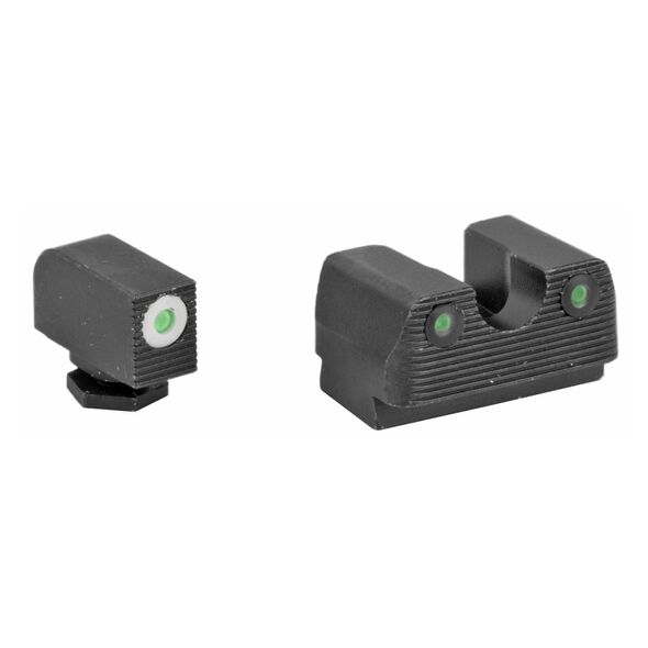 Rival Arms Tritium 3 Dot Front/Rear Green Night Sight, Fits Glock 17/19, White Front Sight Ring, Black Nitride Quench-Polish-Quench (QPQ) Finish RA-RA1B231G
