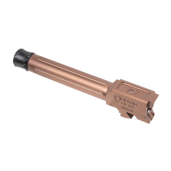 Fortis Manufacturing, Inc. Match Grade Barrel, Threaded Fluted Barrel, 9MM, 4", Fits Glock 19 Gen 1-5 and 19X, Copper Finish, Threaded, Titanium Copper Nitride FM-G19-TB-CPPR