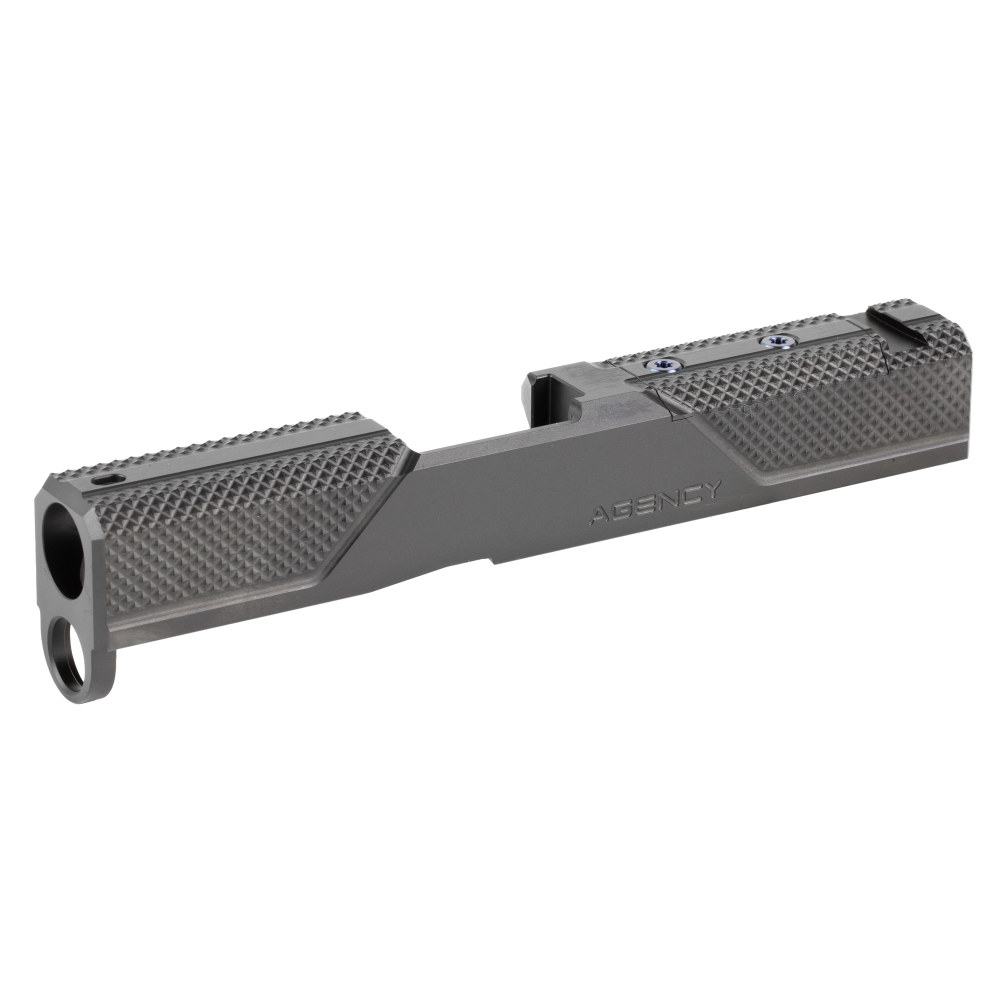 Agency Arms Syndicate S2, Stripped Slide, Optics Ready, Front and Rear Knurling, Diamond Like Carbon Coating, Black, Fits Glock 43/43X SYN-43S2