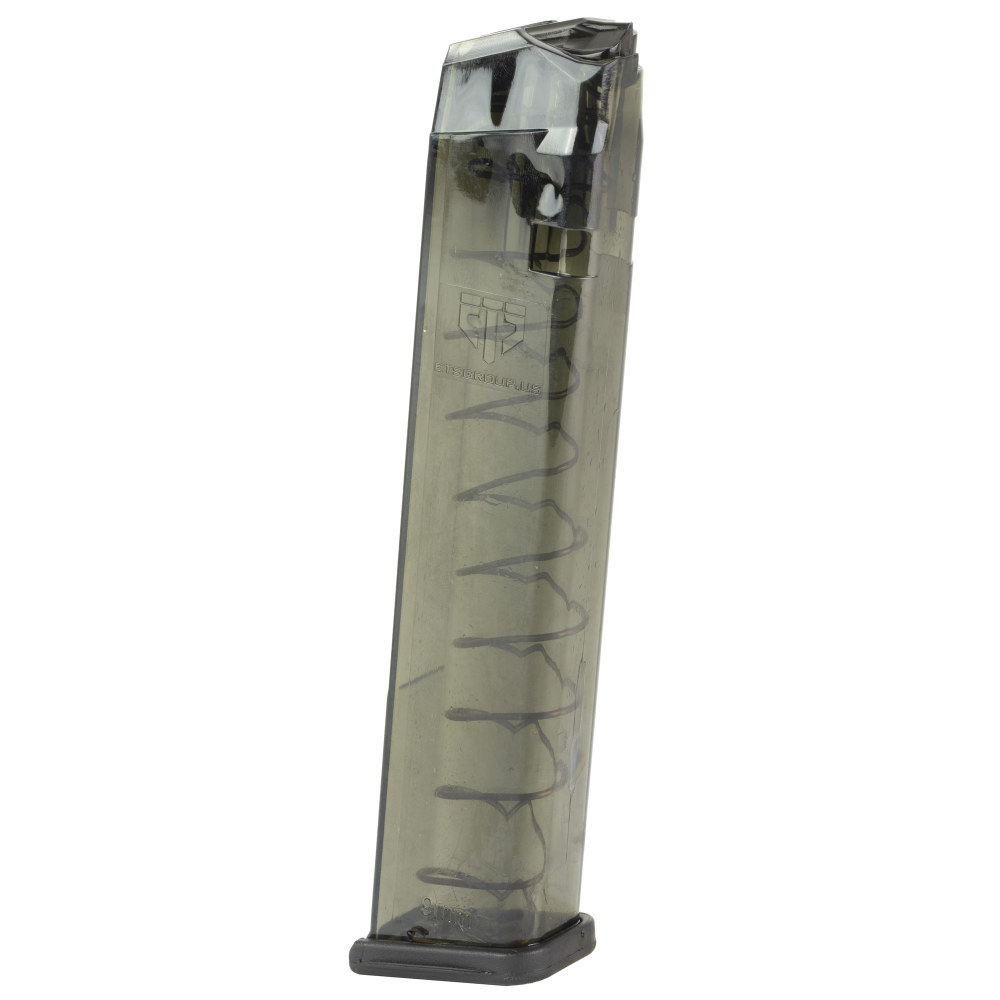 Elite Tactical Systems Group Magazine, 9MM, 27 Rounds, Fits Glock 17/19/26, Carbon Smoke SMK-GLK-9-170