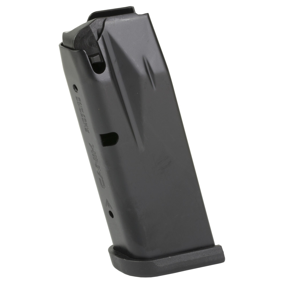 CANIK MC9 Magazine, 9MM, 12 Rounds, Fits Canik MC9, Matte Finish, Black, Includes Black Finger Rest Baseplate and Flush Baseplate MA2277