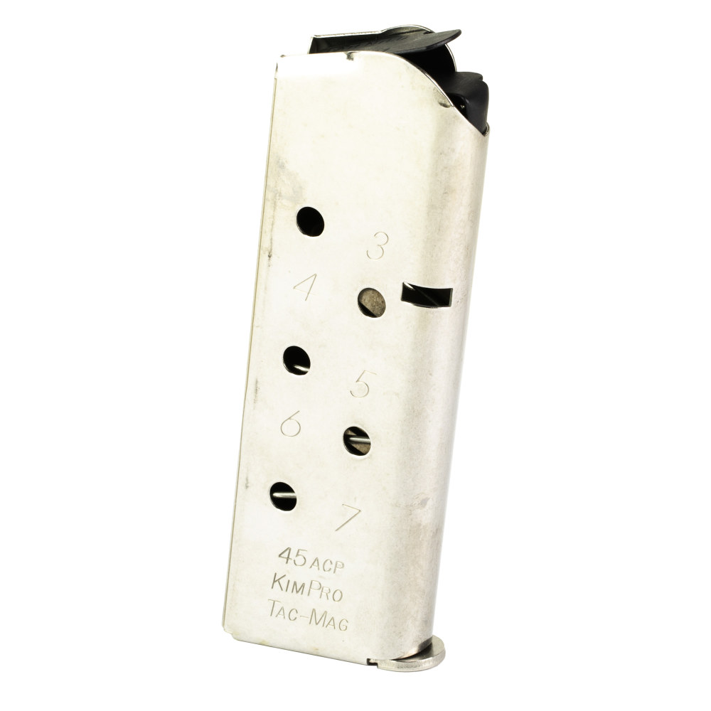 Kimber America Magazine, Kim Pro, Tac Mag, 45 ACP, 7 Rounds, For Compact 1911, Stainless Steel, Silver 1100813A