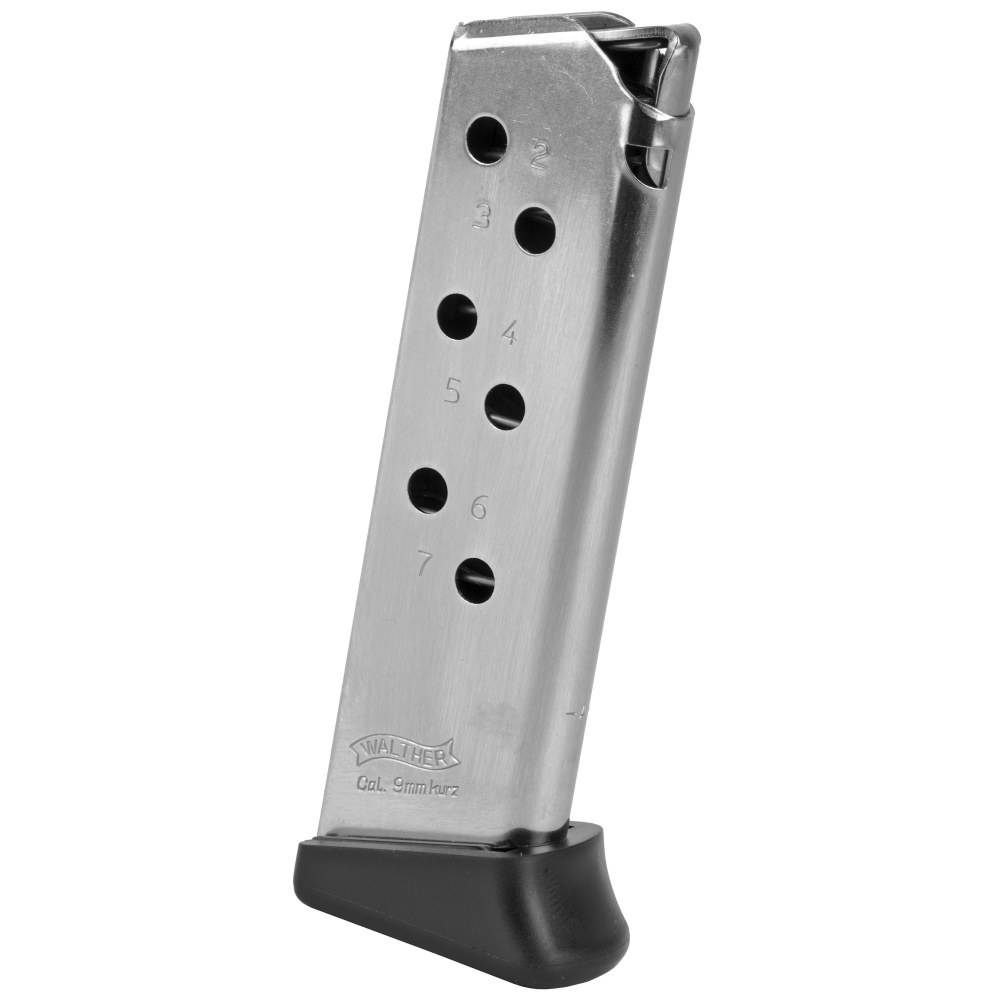 Walther Magazine, 380ACP, 7 Rounds, Fits PPK/S, with Finger Rest, Nickel Finish 2246012