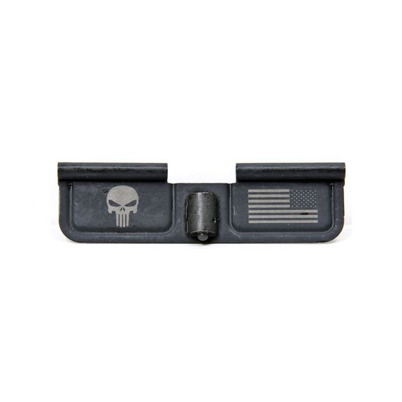 Spike's Tactical Ejection Port Door, Punisher & Flag Engraving, Black Finish SED7005