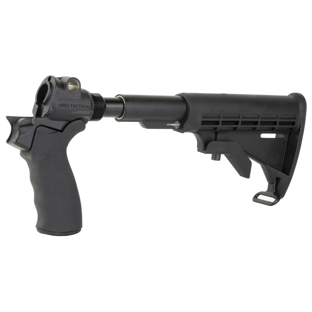 Mesa Tactical LEO Recoil Stock Kit, Stock, Black, Features a lowered stock elevation allowing the use of iron sights or even the bead sight., Includes LEO Stock Adapter, Standard A2 Collapsible Stock, and Hogue Grip, Mossberg 500, 590 92650