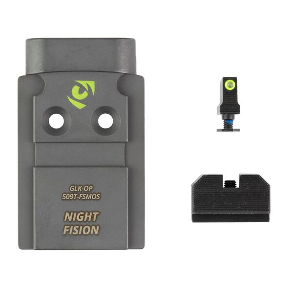 NGTFSN Optic Plate + Backup Sight Combo, Yellow Front Night Sight with Black Rear, Holosun 509T Optic Plate, Fits Full Size Glock MOS GLK-OPBS-509T-MOS-YGZX