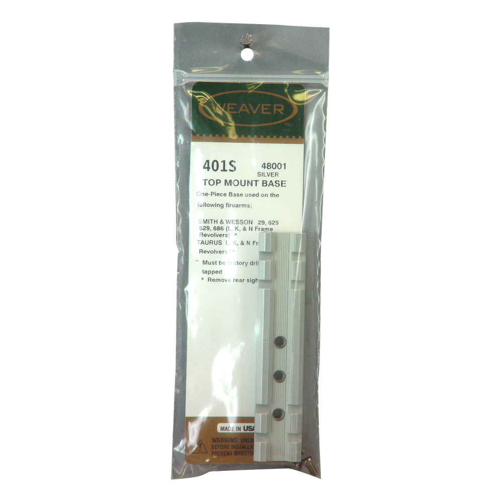 Weaver Model #401S Detachable Top Mount 1 Piece Base, Fits S&W K, L, N Frame, Silver Finish 48001