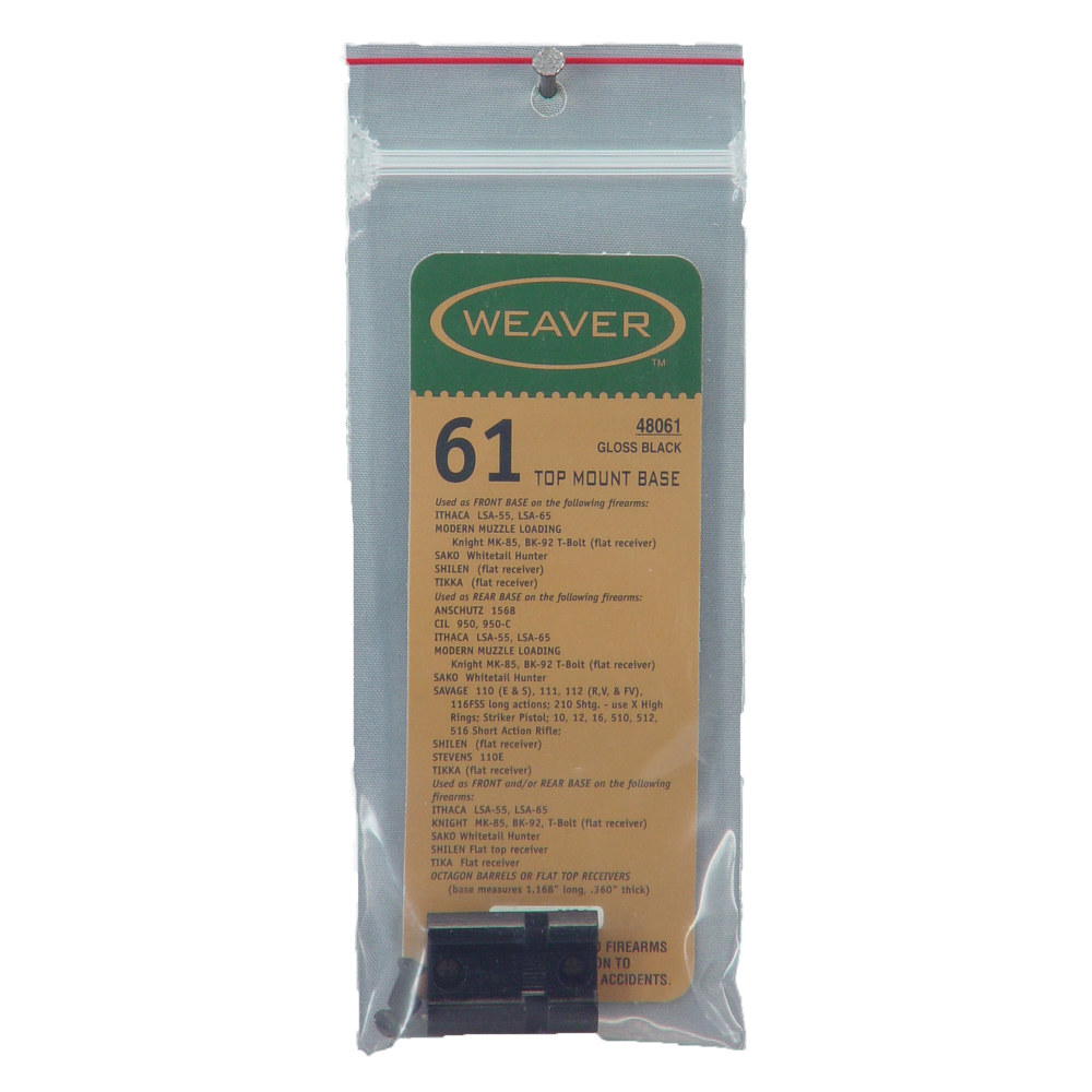 Weaver Model #61 Detachable Top Mount 2 Piece Base, Fits Modern Muzzle Loading Knight MK-85, BK-92, T-Bolt, Gloss Finish 48061